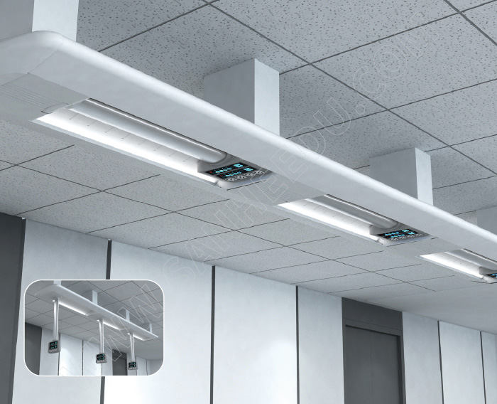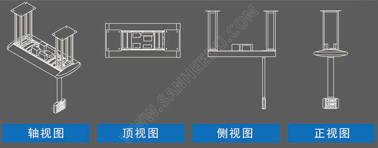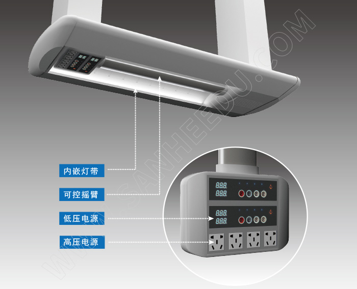 頂裝模塊,提供供電和照明功能,無(wú)線遙控?fù)u臂升降。 |