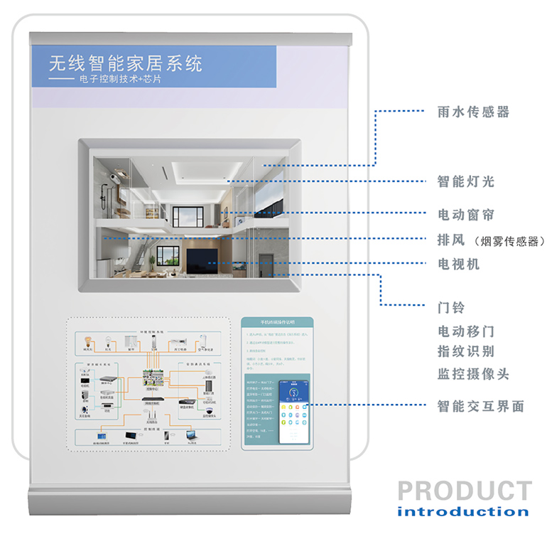 內(nèi)嵌智能家居演示模型和智能交互手機(jī),通過(guò)APP可以無(wú)線控制模型的各種交互動(dòng)作。 采用智慧型邏輯主板,能精準(zhǔn)智能地控制各種傳感器和聲光電設(shè)備,配有指紋識(shí)別模組、暖通數(shù)字顯示模組、環(huán)境感知模組、可視門鈴及監(jiān)控、自帶離線語(yǔ)音控制等。 |